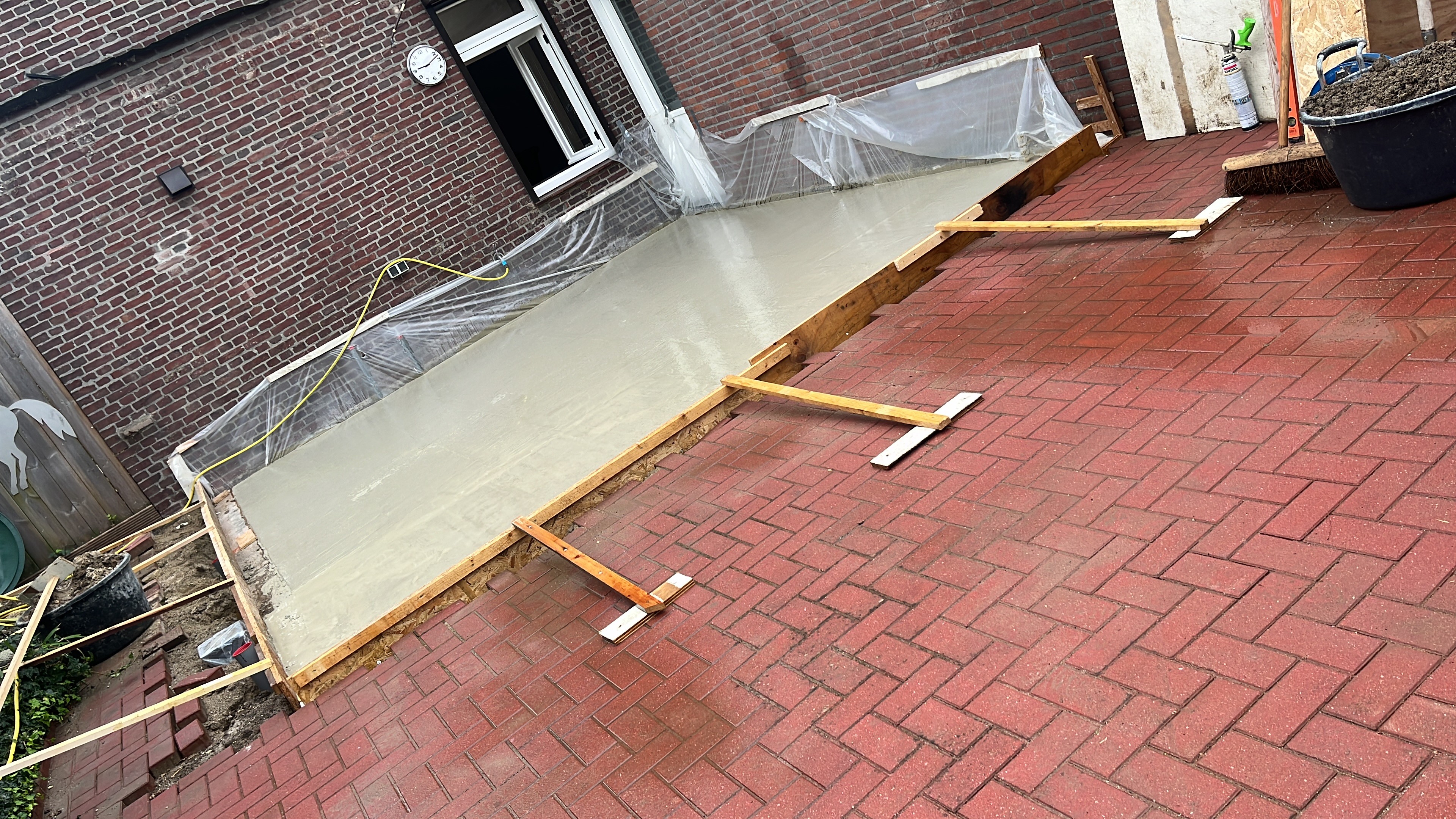 De oude constructie is zorgvuldig afgebroken, waarna de fundering en basis voor de nieuwe aanbouw professioneel zijn aangelegd.