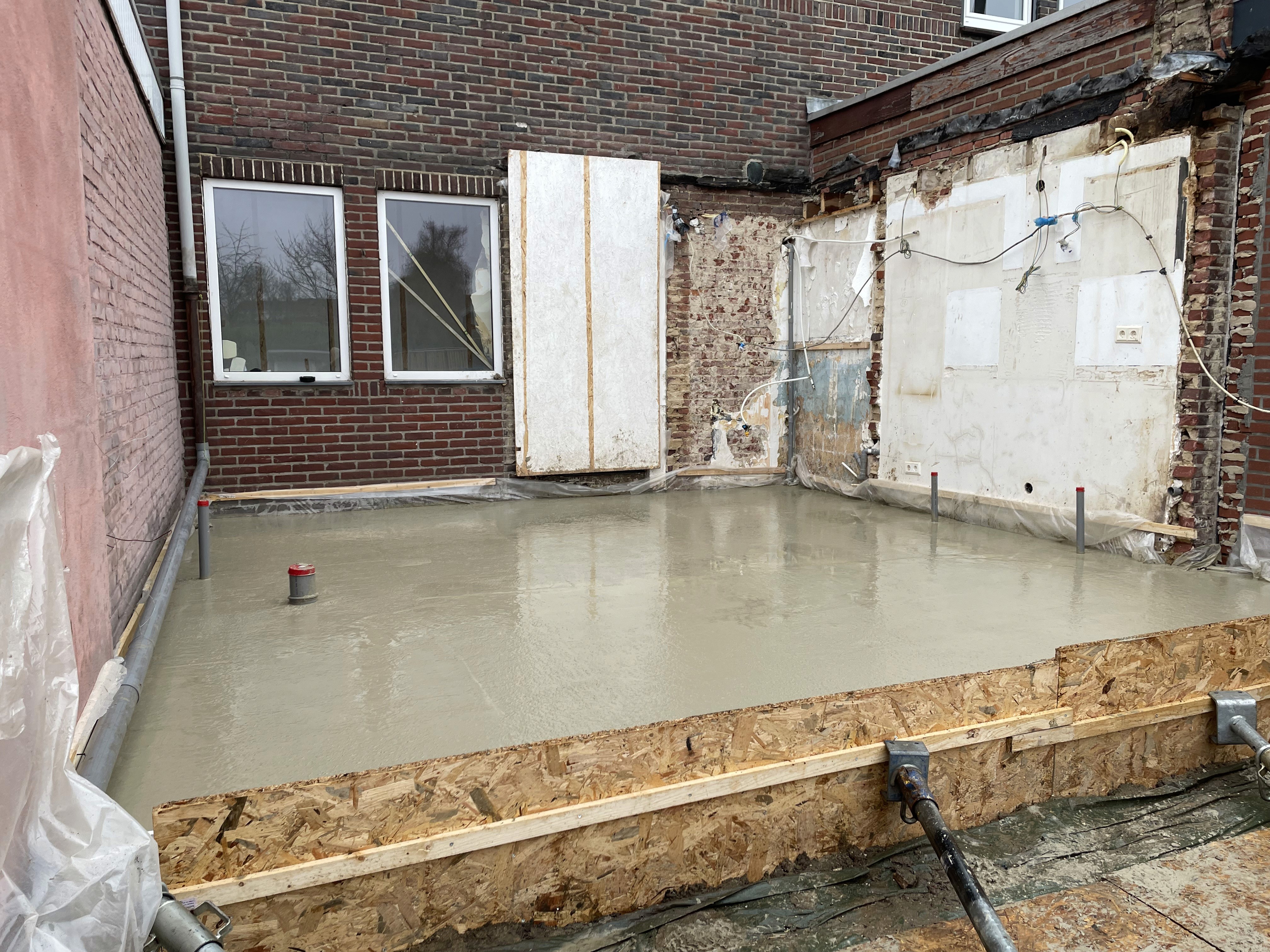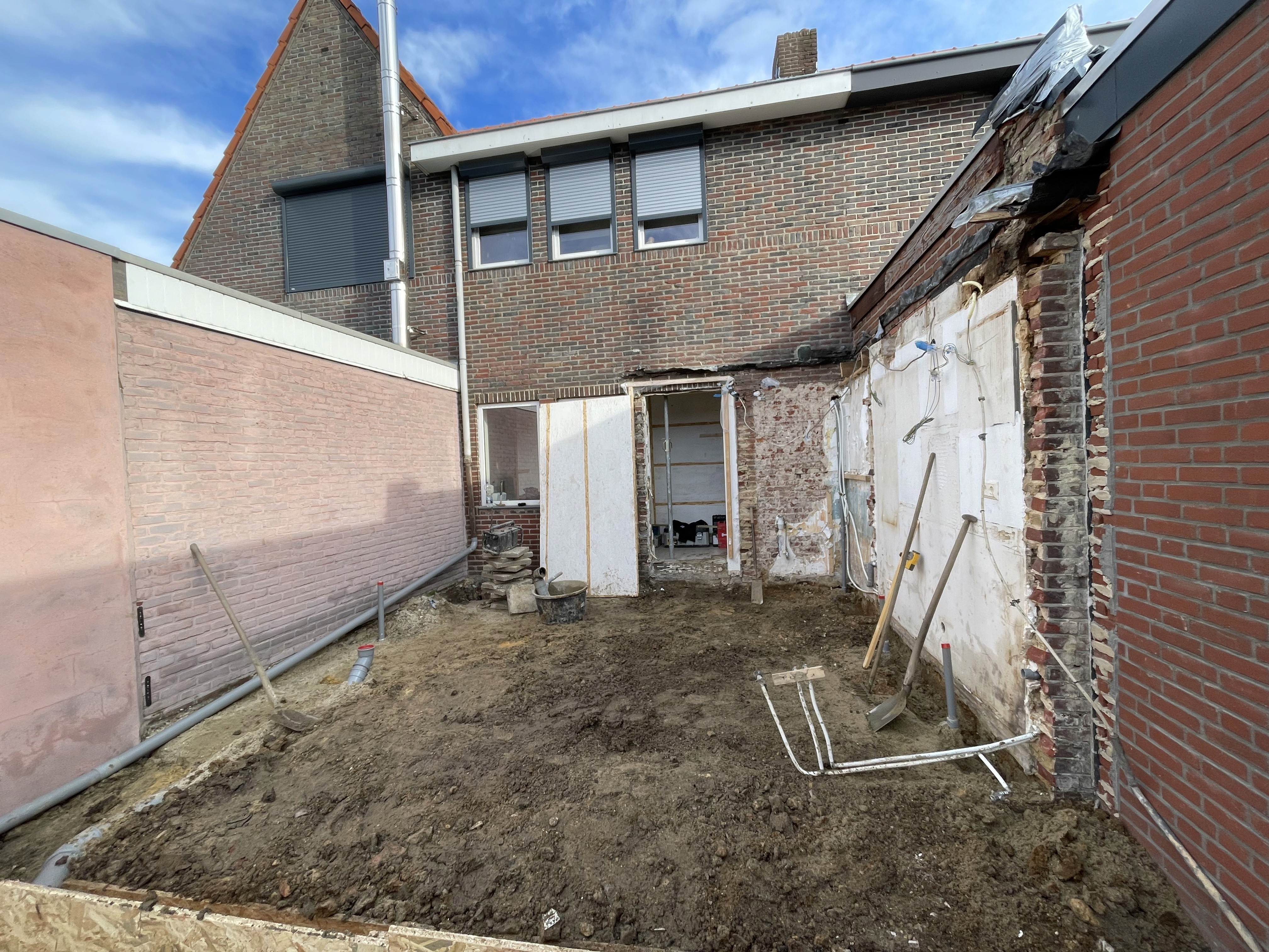 De bestaande aanbouw is volledig verwijderd. Vervolgens zijn de grond- en funderingswerkzaamheden uitgevoerd als solide basis voor de nieuwe constructie.